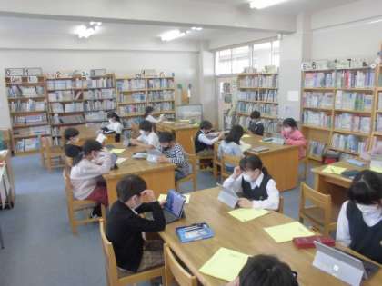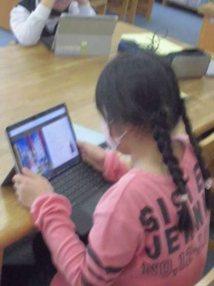 この時間も 紙の本を手にする児童 タブレットで読書する児童 様々でした