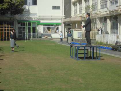 その後、新しいALTの先生の紹介 そして、生活指導主任の金子先生から校庭で遊ぶときのルールのお話がありました。