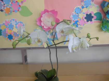 5月2日 きれいな胡蝶蘭 公開日 2023/05/02 更新日 2023/05/02 校長日記 本校の玄関に 胡蝶蘭が飾られています。 これは、本校のボランティアさんが手塩にかけて育ててくださったお花です。 胡蝶蘭は、再び花をつけることが相当難しい植物のようで、 昨年度、大変なお手間をおかけしました。 今、こうやって見事にきれいな花が咲いています!! ご来校の際、ぜひ、皆さんもご覧ください!!