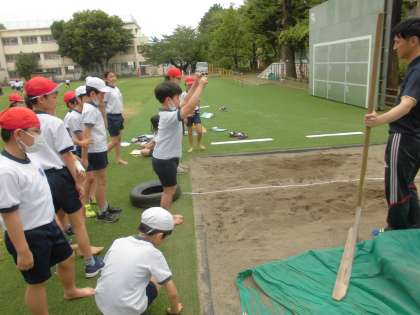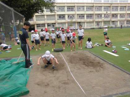 6月6日【4年生】 体力テスト 立ち幅跳び 公開日 2023/06/06 更新日 2023/06/06 校長日記 4年生は、 ソフトボール投げの別の場所で 立ち幅跳びの測定も!! 隣でなかよし園の園児が楽しそうに遊んでいます。 園児たちもお兄さんお姉さんたちの競技のようす 興味深そうに覗いていました!!