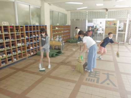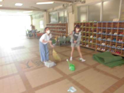 6月13日【6年生】家庭科の学習 公開日 2023/06/13 更新日 2023/06/13 校長日記 なかよし園のプールと小学校のプール 行ったり来たりしていると 正面玄関の昇降口付近で子供たちが掃除を!!!! どうしたんだろう!! 声をかけると 「家庭科の学習です」 掃除の実習です!! 子供たちの学習で 学校がきれいになって 一石二鳥です!!