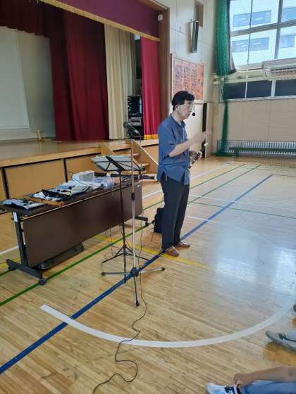 7月3日【3年生】リコーダー 公開日 2023/07/03 更新日 2023/07/03 校長日記 3年生から音楽では、リコーダーの学習が始まります。 今日は、東京リコーダー協会の 笠松 徳司先生をお招きして リコーダーのお話&模範演技を見せていただきました。 リコーダーといってもたくさんの種類があります。 大きなものから 本当に小さくて細いリコーダーもありました。