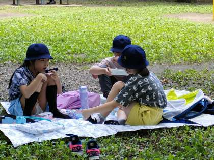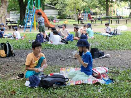 いよいよお弁当をです みんないい顔して食べてます