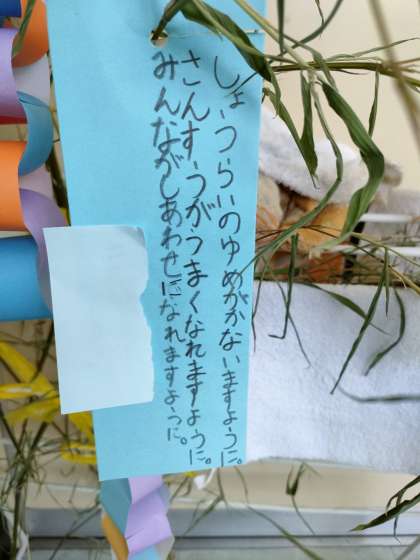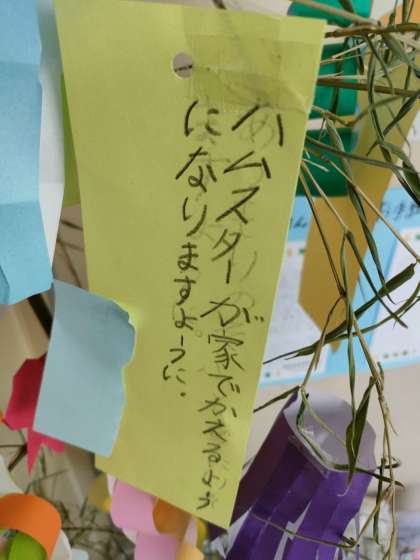 7月10日 七夕 願いを込めて!!その3 公開日 2023/07/10 更新日 2023/07/10 校長日記 ハムスター 家で飼えるようになるといいね!! 頑張って リレーの選手になってください 練習すると その分速くなります!!!