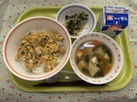 今日の献立 ・ごはん ・ゴーヤの佃煮 ・冬瓜と豚肉の煮物 ・野菜のごま和え ・牛乳