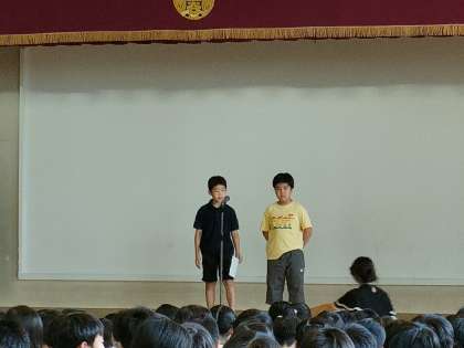体育館は、クーラーが聞いて涼しい状況でしたが、 2人は汗びっしょりでした。