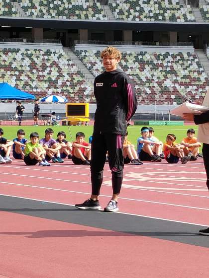 10月11日【6年生】陸上記録大会 ランニングクリニック 公開日 2023/10/11 更新日 2023/10/11 校長日記 開会式が終わった後は 世界陸上 男子100m リレー 銅メダリストの白井選手によるクリニックが行われました やはり世界のメダリストの走りは違います 子供たち 少し緊張気味ではありました しかし全力で走っていました