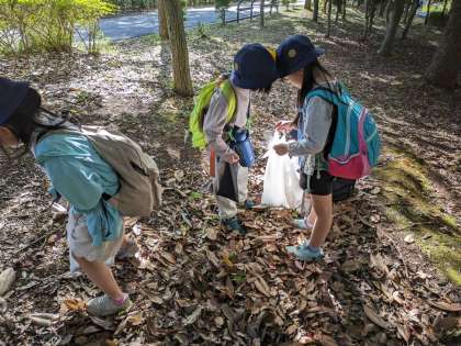 担任の先生とも一緒に どんぐり拾い!!