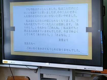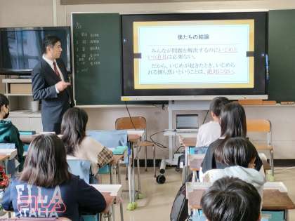 本校では、5年生で弁護士によるいじめ防止の授業を行っています。