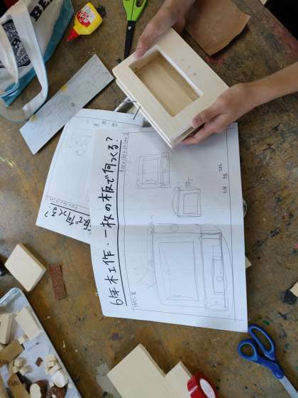 木工製作中で 本棚 ペン立て など 設計図を描き、