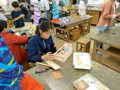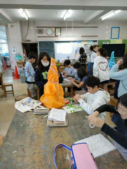 11月15日【6年生】 木工製作&カラフルコーンづくり 公開日 2023/11/15 更新日 2023/11/15 校長日記 木工を作り終わった人は、 カラフルコーンづくりのお手伝い カラフルコーンは学習発表会&なかよし園の作品展で 小学生(1〜3年生)& なかよし園(3歳から5歳児)の共同制作です。 6年生も おおもとのコーンの装飾を手伝ってくれてます。 さすがは6年生!!