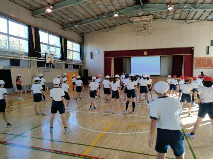 1,2組合同の授業で ダンスの様々なステップや踊りを行いました