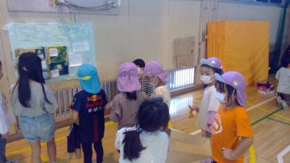 トレーや紙コップやペットボトルキャップもうまく使って工作しています。