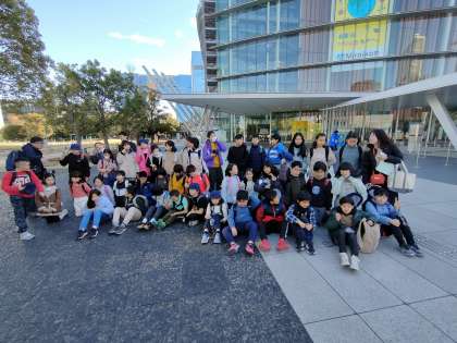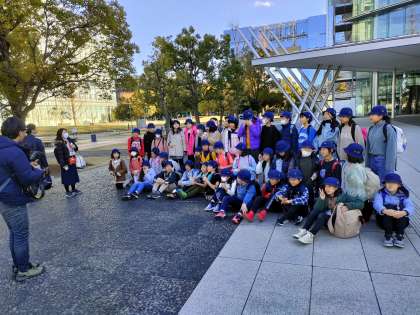 天理教の見学も終わり 学年全員で写真撮影を行いました 今から学校に帰ります