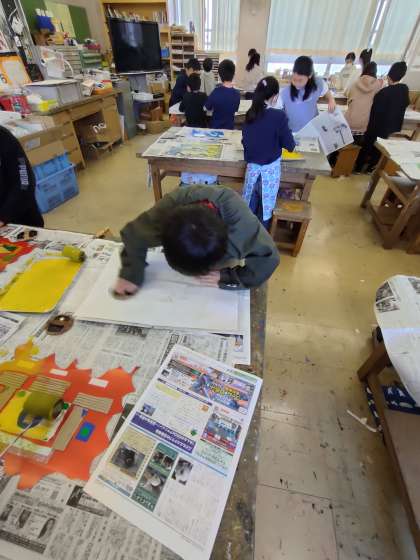 1月26日【3年生】 ふしぎなのりもの (版画)