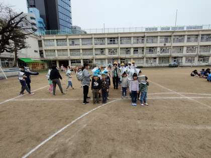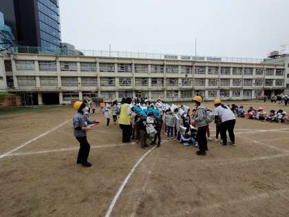 園児たちも素早く校庭に集まります!!