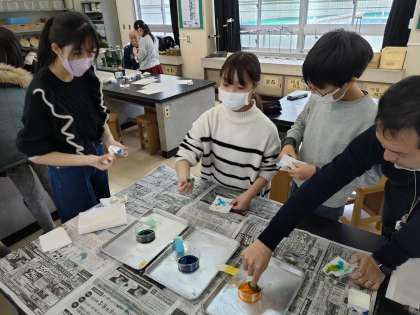 3月5日【6年生】折染めの様子 6の2