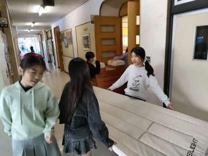 3月11日【5年生】全校朝会直後 公開日 2024/03/11 更新日 2024/03/11 校長日記 全校朝会が終わったすぐ・・・ 体育館がにぎやかに・・ 5年生たちが 卒業式の準備のために 体育のセッティングです!! ありがとう!!