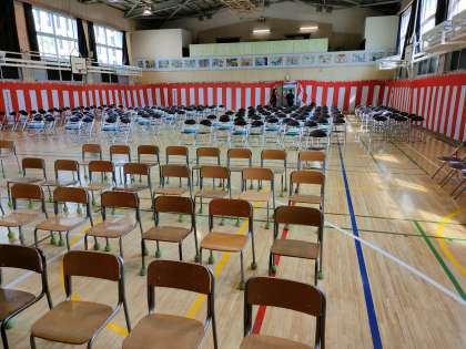 始業式が終わり、 6年生が入学式の準備を よろしくお願いします!!