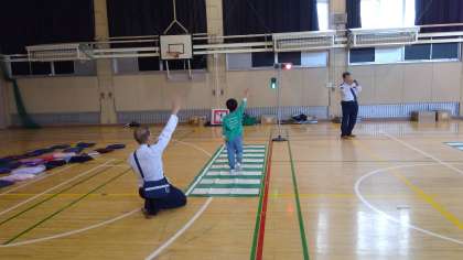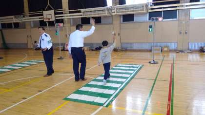 渋谷警察署の方々から横断歩道の渡り方をご指導いただきました。