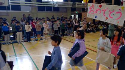 1年生を在校生全員でお迎えしました。