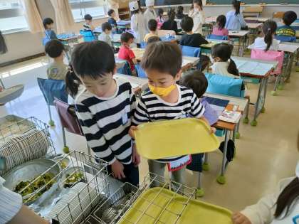 4月15日【1年生】給食準備 公開日 2024/04/15 更新日 2024/04/15 校長日記 担任の先生 そして、白衣を着ているのが、児玉栄養士さんです 栄養士さんも 1年生のヘルプに入ります!!
