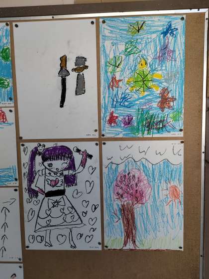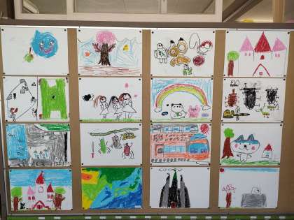 こちらは、1年1組の教室前に掲示した作品です。 ちなみに前のぺーじのは1年2組の作品です!