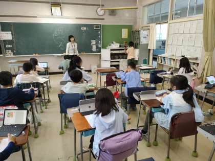 3年生から学習者用デジタル教科書(子供たち一人一人が使用できるデジタル教科書)が国語・算数・外国語(5・6年生のみ)を使用して学習します。