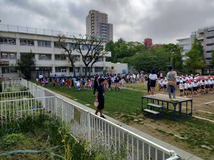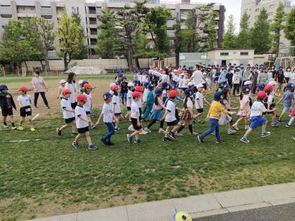 最後は、きれいに行進しながら、自分たちの教室に戻りました!