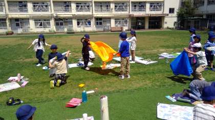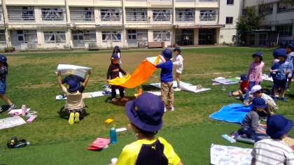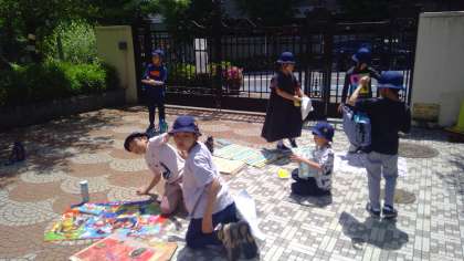 晴天の中 今日は、2年生 消防写生会でした あと片付けも自分たちできちんとします。