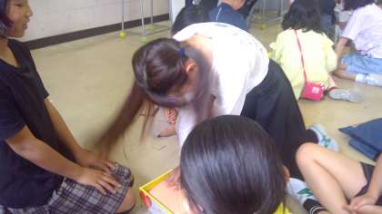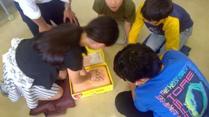 ALSOKの方々から心肺蘇生の方法やAEDの説明を受けました。