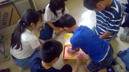 ALSOKの方々から心肺蘇生の方法やAEDの説明を受けました。