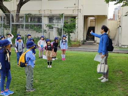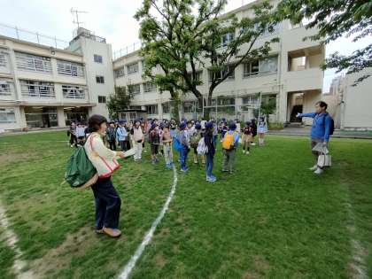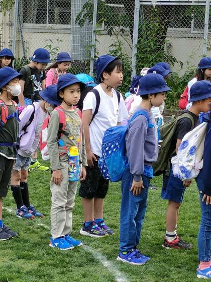 校庭で出発式です 整列も挨拶もしっかりと元気にできました