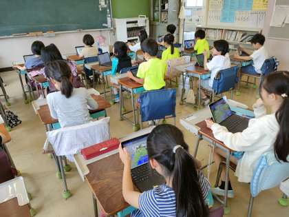 5月22日【2年生】生活科 ぐんぐん育て!私の野菜 公開日 2024/05/22 更新日 2024/05/22 校長日記 まずは、前回の授業で自分のミニトマトをタブレットで撮影 種を植えたころと比較してどうなったか 気づいたことをタブレットに書き込みます!!
