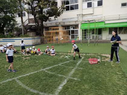 1校時目から 今日は全学年ソフトボール投げを実施します!! まずは2年生!!