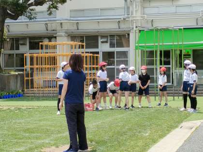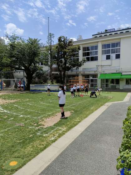 6月7日【5年生】ソフトボール投げ 担任の先生も挑戦