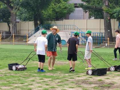 6月26日【運動・整備委員会】朝の芝生の世話 公開日 2024/06/26 更新日 2024/06/26 校長日記 7時50分ごろから 運動・整備委員会の子供たちが 芝刈りに加わってくれます!! 地域と学校の子供たちと一緒になってみんなで芝生を大切に!! 育てていきます!!