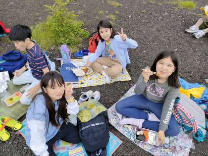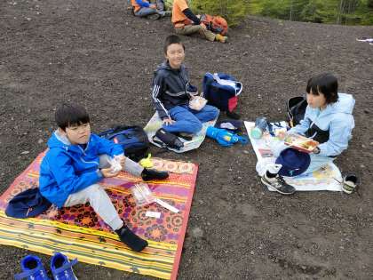 6月27日【4年生】御殿場 宿泊体験 お弁当 タイム 公開日 2024/06/27 更新日 2024/06/27 校長日記 たくさん歩いて 頂上にたどり着いて お腹は ペコペコです 待望の お弁当タイムです