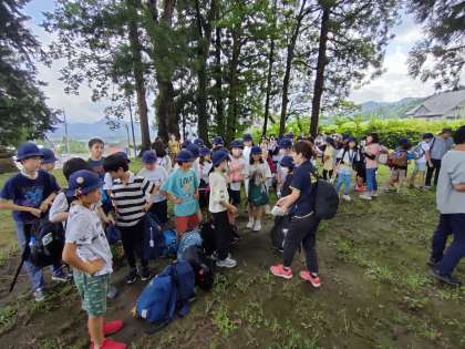 7月25日【5年生】入村式 公開日 2024/07/25 更新日 2024/07/25 校長日記 宿のお父さんお母さんたちに聞きますと 午前中は 強い雷雨だったそうです 午後になって 青空に戻り 今とても天気はいいです 子供達全員元気で 飯山に入りました
