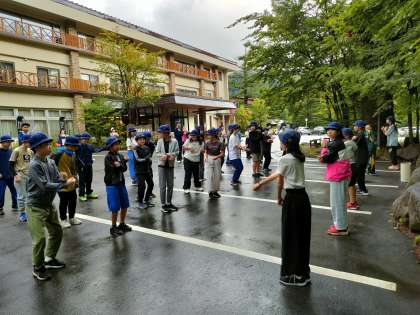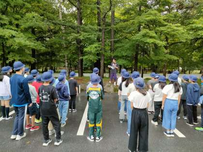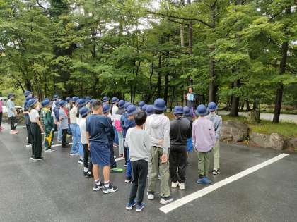 ラジオ体操が終わり 担任の先生から今日の予定 今日の注意事項の説明があります
