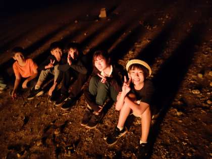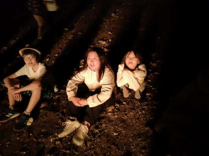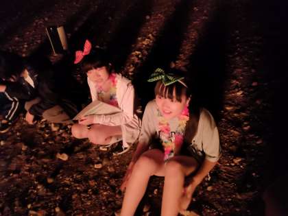 キャンプファイヤーに火がつき 子供達もエキサイティングです