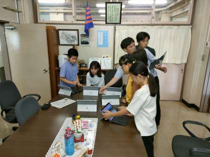 全校朝会の日です。 今回はオンライン 今日は、5年生の飯山の発表があります。