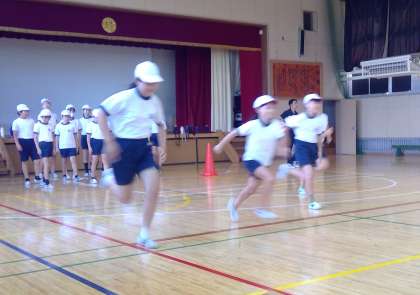 何回か 重ねると きれいなフォームに なってきました。 最後に外で練習です。