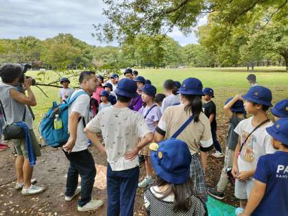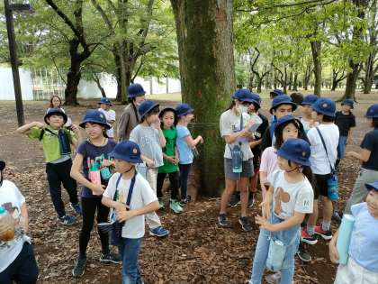 6年生がリーダーになって立ち 割り班でオリエンテーリング