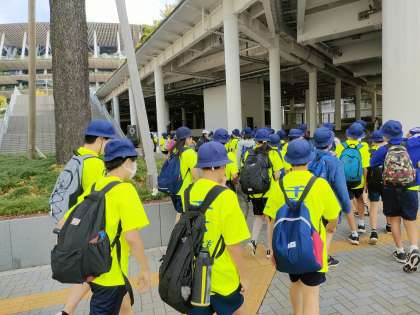 千駄谷小学校から歩いて5分弱 国立競技場に到着しました