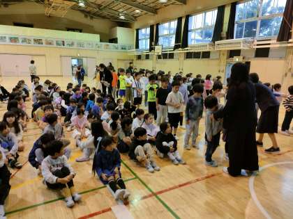 まず、3年生が体育館に そして、2年生 1年生が次々と