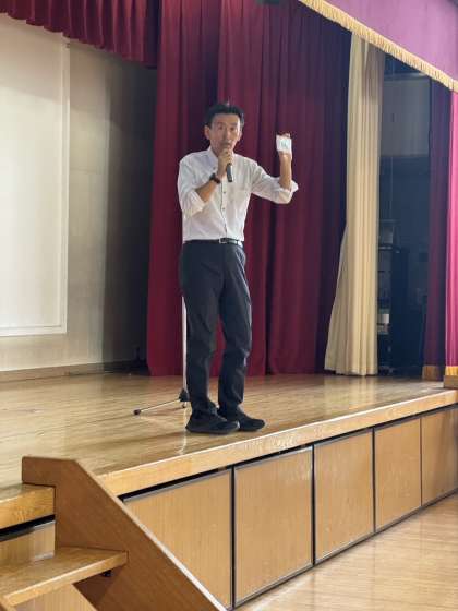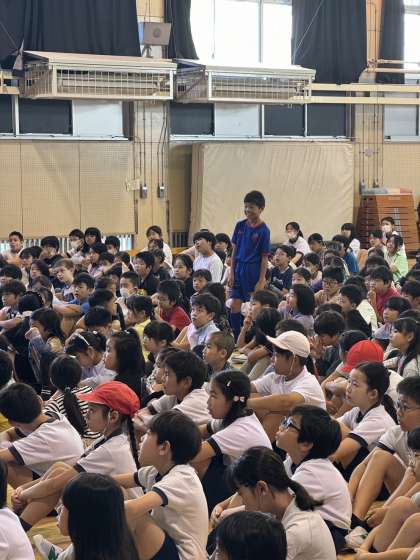 まず、先週終業式の時に表彰を行った 交通安全絵画コンクールで特賞を受賞した男子 その作品が ポケットティッシュになったこと