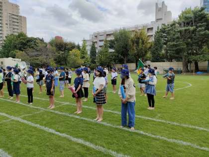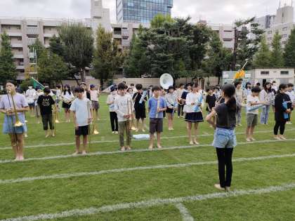 開会式披露する鼓笛の練習 今日が初めての校庭での練習 いい演奏ができるよう頑張りましょう!!
