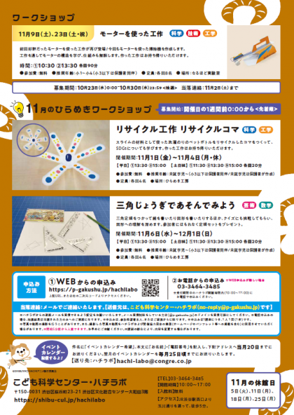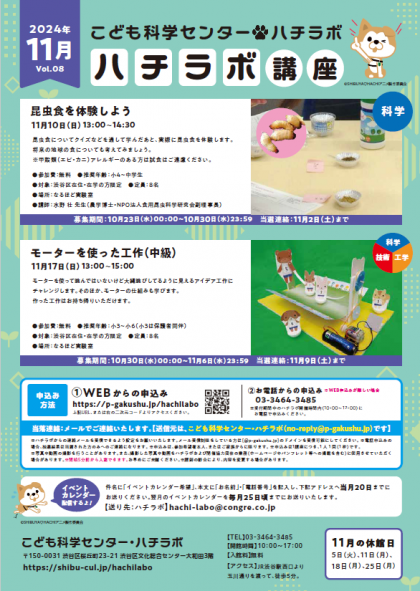 ハチラボ 11月の講座、イベント、ワークショップ のお知らせです。