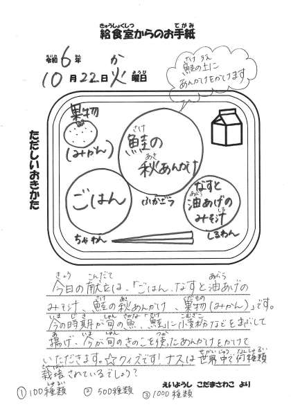 【今日の献立】10月22日(火)
